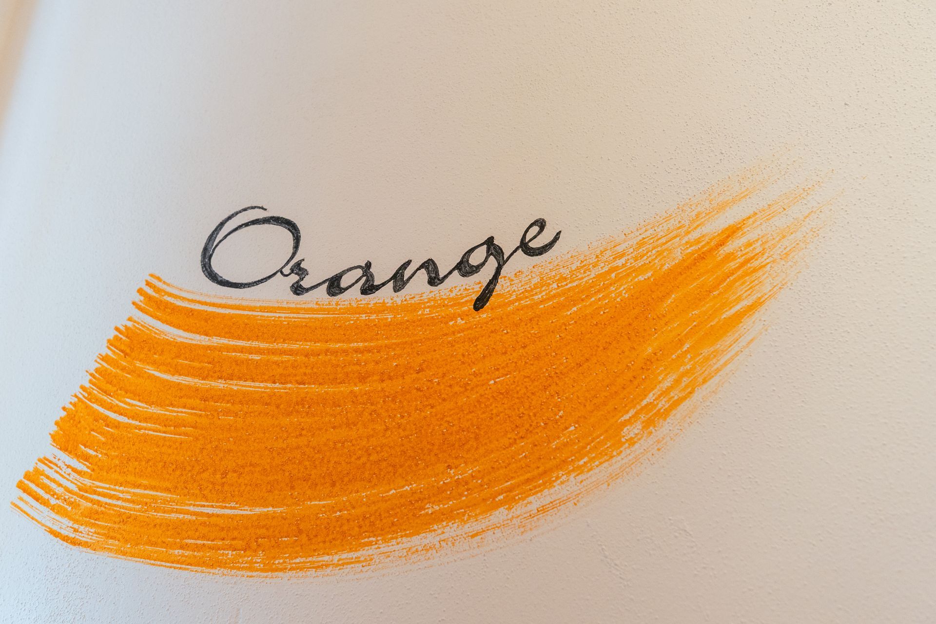 Gemütliche Ferienwohnung ORANGE (32 m²) für 2 Personen bestehend aus Wohnraum, Kochecke, Doppelbettzimmer sowie Badezimmer und Terrasse, ...
